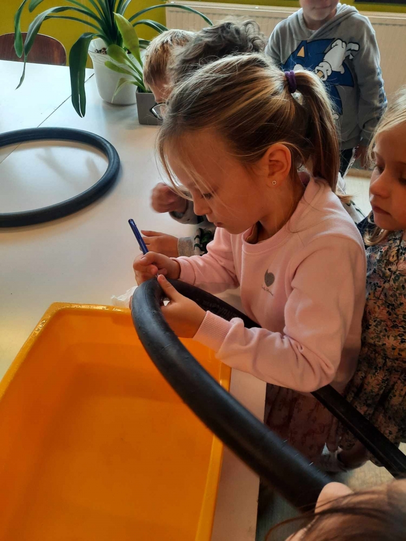 Wielen uithalen en terug plaatsen, (binnen-)banden vervangen, zadels afstellen, en nog veel meer. De kinderen gingen aan de slag met allerlei sleutels en pompen. Ze maakten de fietsen opnieuw fietsklaar en konden ze uittesten op het fietsparcours en mountainbikeomloop op school. Met dank aan enkele hulpvaardige ouders voor de extra ondersteuning.